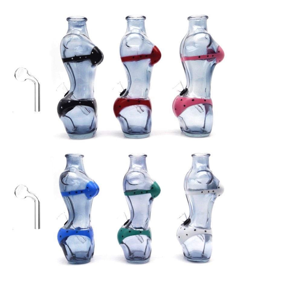 Glas bong mit Zusatz für Oil Adapter Lady Form in 6 Farbe Sortiert H: 16cm