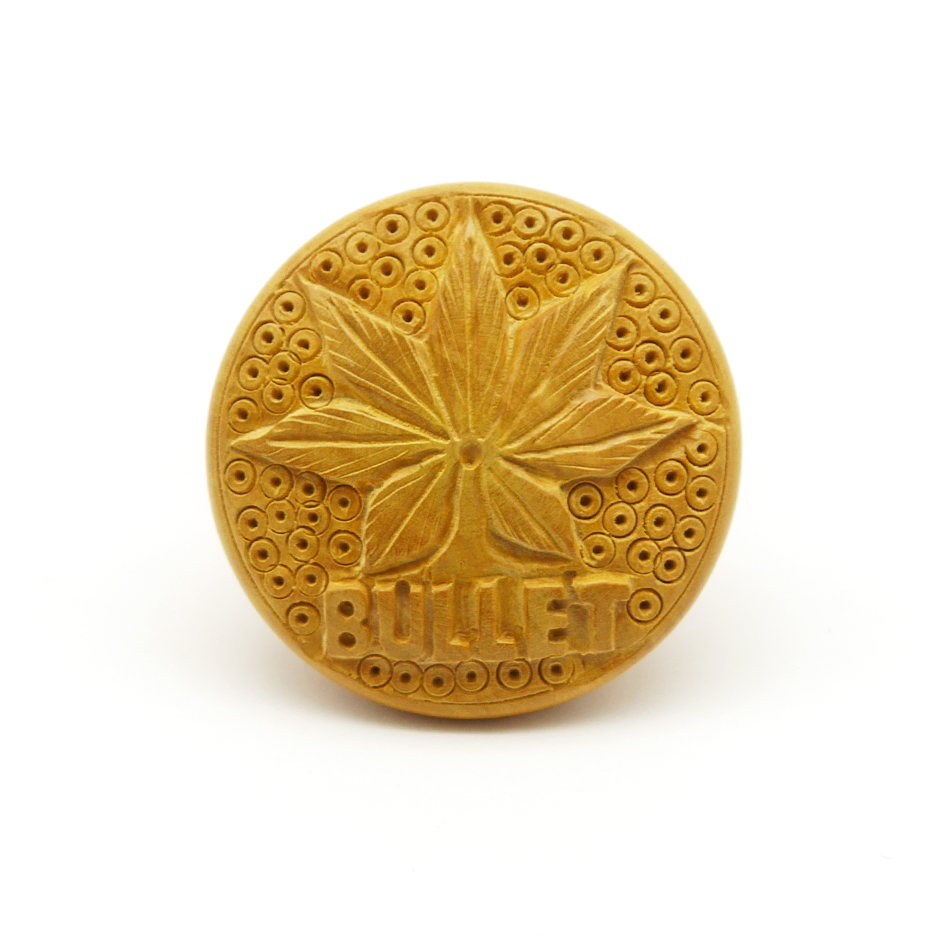 Handgefertigter Holzgrinder mit Blattmotiv und 33 Metal Nägel (ca.