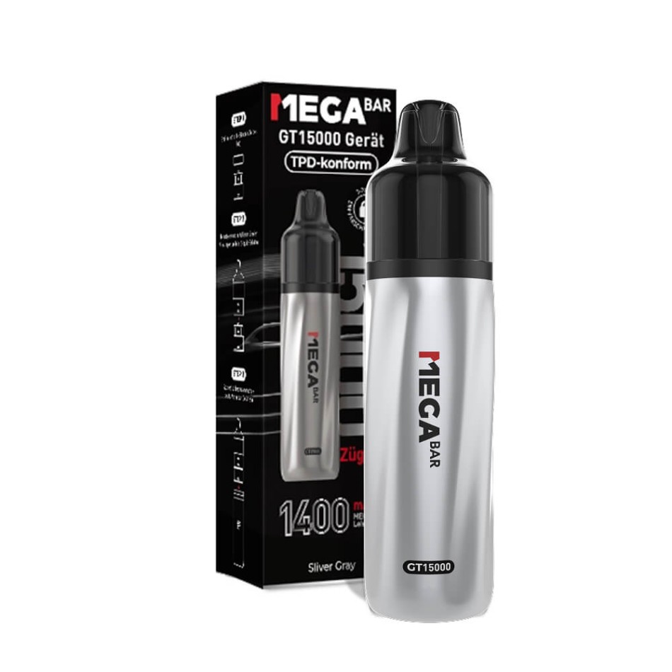 MEGABAR GT15000 Batterie – Silver Gray mit Steuerzeichen | 5er-Pack