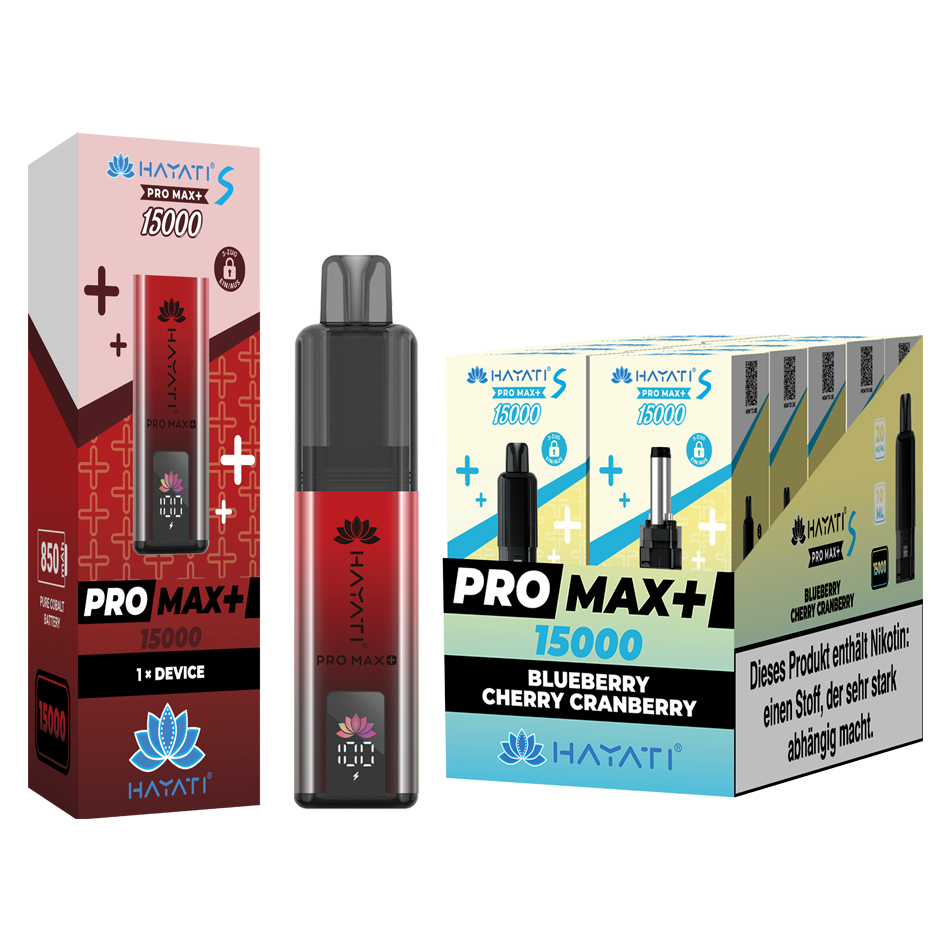Hayati Pro Max Plus S15000 Pod Set + Basisgerät "Blueberry Cherry Cranberry"