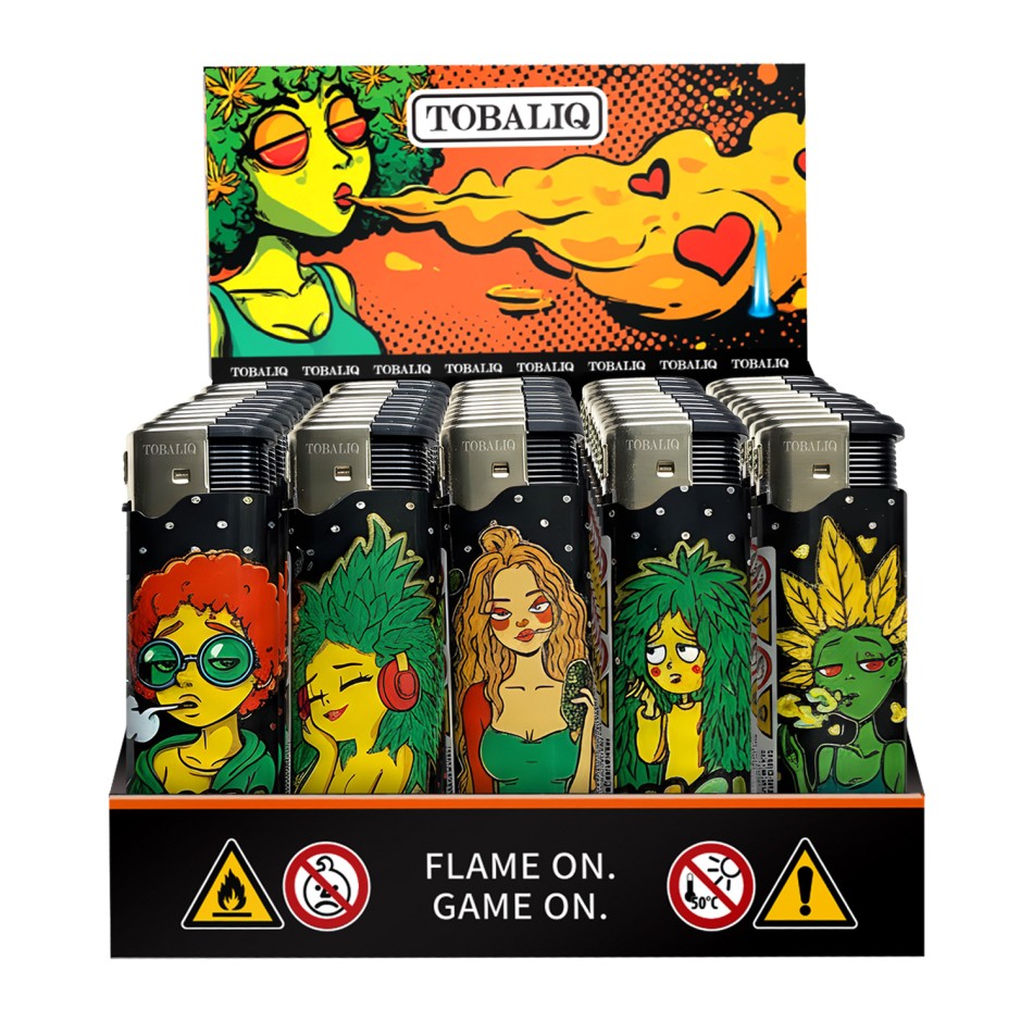 TOBALIQ Elektronische Feuerzeuge Motiv sind Feuerzeuge aus Kunststoff mit Piezozündung.