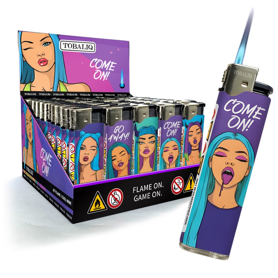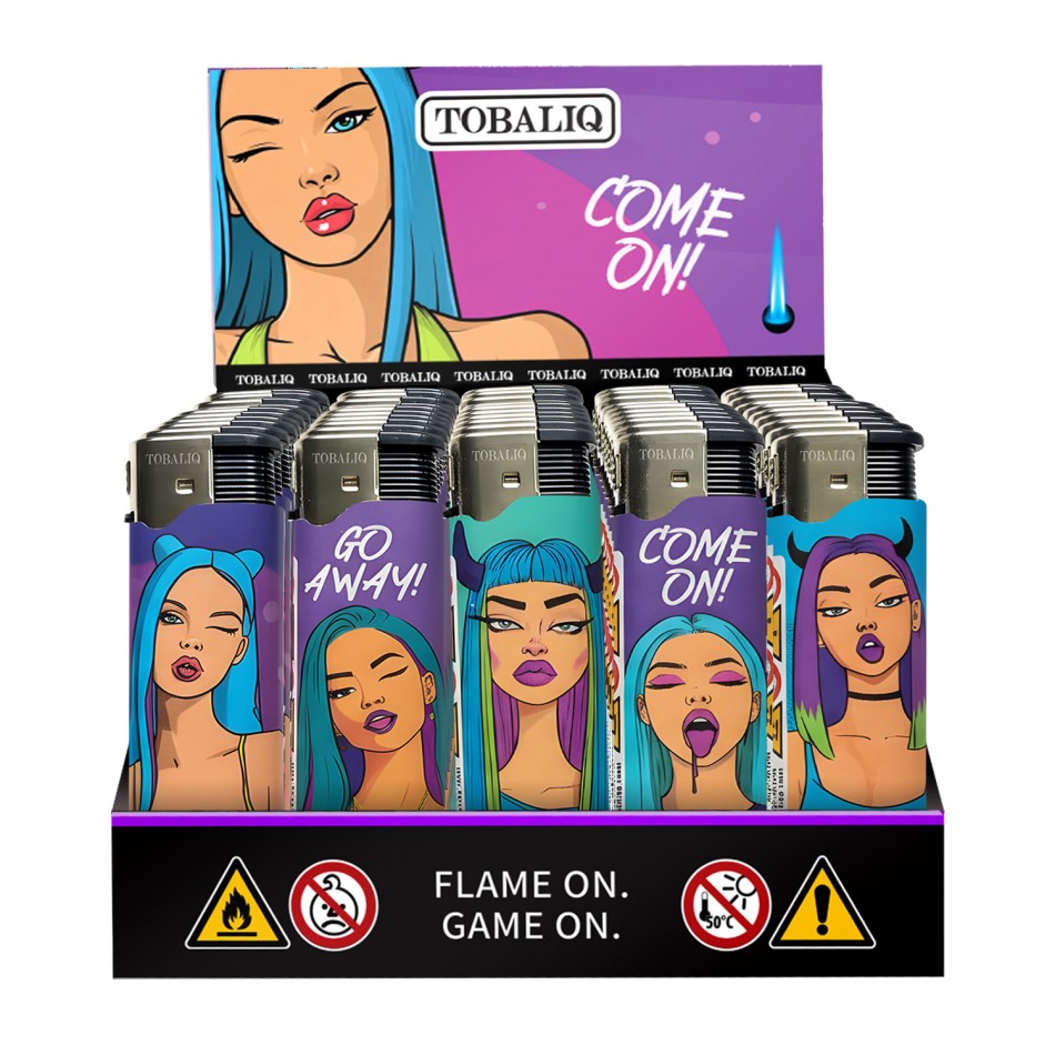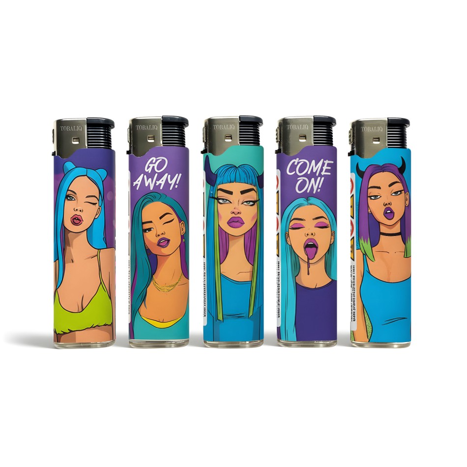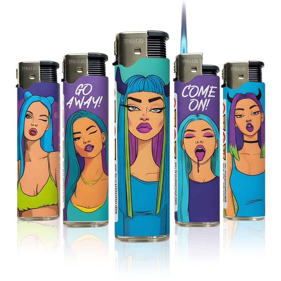 TOBALIQ Elektronische Feuerzeuge Motiv sind Feuerzeuge aus Kunststoff mit Piezozündung.