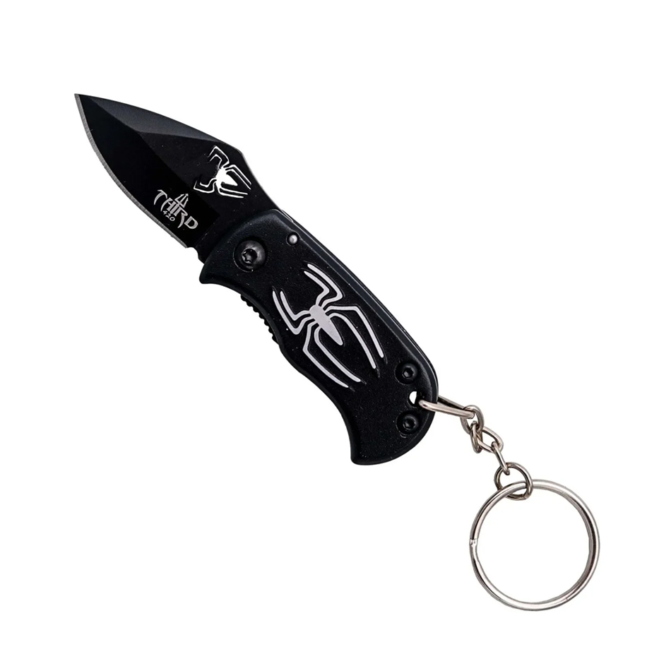 Taschenmesser Schwarz mit Spinne eingravierte druck & Schlüsselanhänger | Klingenlänge: 4 cm, Grifflänge 5cm, Gesamtlänge: ca.9 cm