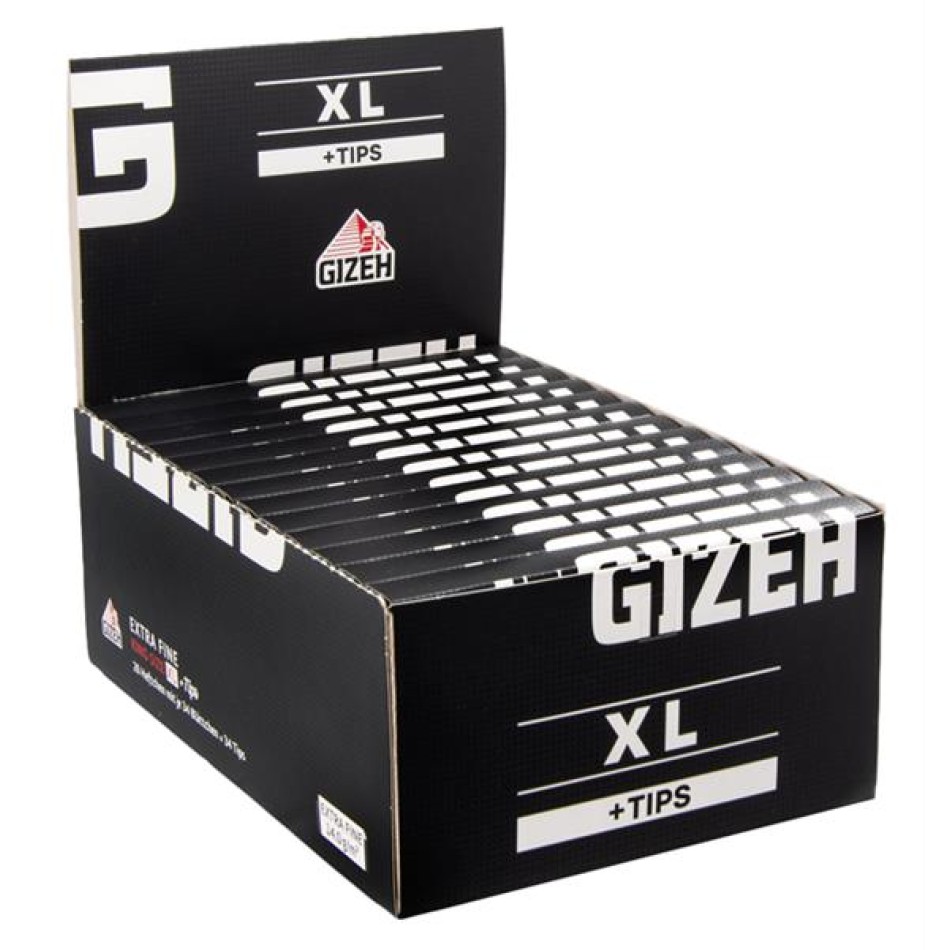 GIZEH Black Extra Fine King Size XL + Tips | 26 Heftchen mit je 34 Blatt + 34 Tips