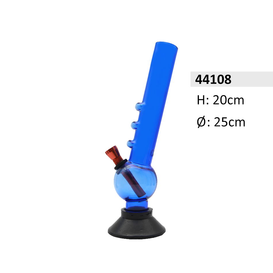 Acrylbong Blau Gebogene mit Handgriff, Kugel & mit Gummi Fuß Ø ca. 25 mm, 20 cm hoch