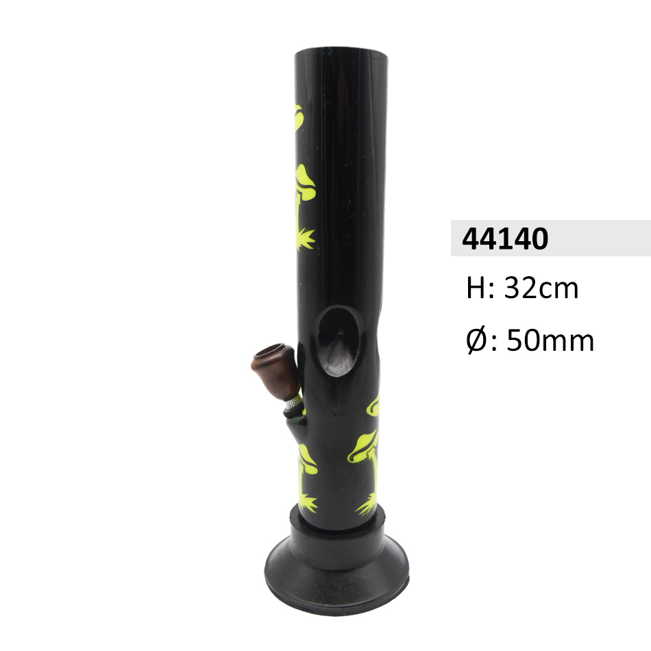 Acryl Ice Bong Gerade Schwarz mit Pilz Motiven & Holzkopf , ca. Ø: 50 mm, H: 32 cm
