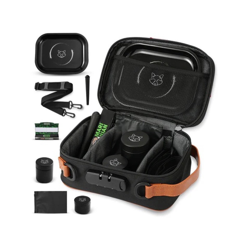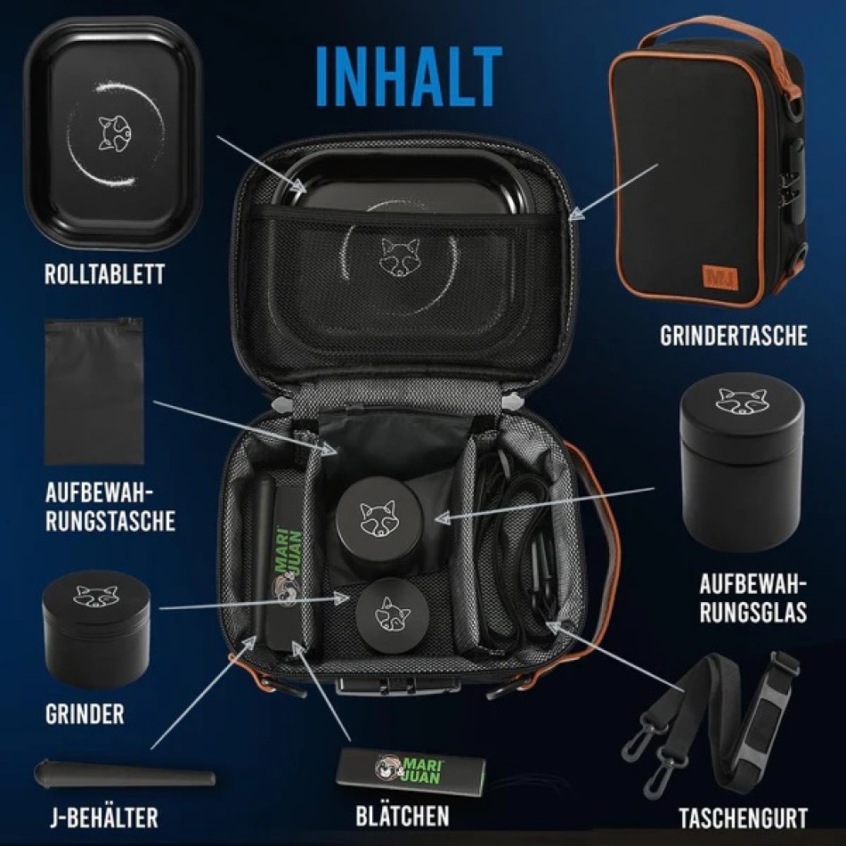 Entdecke das ultimative und umfangreiche Set von Mari & Juan – Deine neue geruchsdichte Aufbewahrungstasche mit Schultergurt, Zahlenkombination und umfangreichem Zubehör. Dieses praktische und stilvolle Set wurde speziell für alle entwickelt, die ihren Mini Grinder oder Kräutermühle für frische Kräuter samt Zubehör sicher, diskret und organisiert aufbewahren möchten – ob zuhause oder unterwegs. Mit dem hochwertigen und funktionale Aufbewahrungstasche kommt mit einem komplettes Zubehörpaket, das keine Wünsche offenlässt: im Set enthalten ist ein vielseitiger Bio Grinder, der als Mini Grinder, Grinder 3 Teilig oder auch als Chilimühle oder Küchenmühle verwendet werden kann. Dank der metallischen Grinder-Verarbeitung ist er langlebig & stabil. Widerstandsfähig, handlich und effektiv – perfekt für Deinen Alltag oder auf Reisen. Die Tasche überzeugt durch ihr modernes Design und praktische Ausstattung. Der integrierte Zahlencode-Verschluss sorgt für maximale Sicherheit, während der verstellbare Schultergurt Dir höchsten Tragekomfort bietet. Im Inneren findest Du clever durchdachten Stauraum für Dein Zubehör – inklusive Aufbewahrungsbeutel, Aufbewahrungsglas mit einem nicht-transparenten Glas, Aufbewahrungshülle und einem kompakten Rolltablett. Abgerundet wird das Set durch 32 hochwertige Blättchen, 32 Filter Tips und ein stylisches Rolltablett – perfekt für spontane Sessions, egal wo Du bist. Alle Komponenten sind optimal auf Reisen abgestimmt. Umweltbewusstsein trifft Funktionalität: Mit dem robusten Grinder bzw. der Kräutermühle unterstützt Du aktiv einen bewussten Lebensstil. Ob als Geschenk oder für Dich selbst: Dieses Komplettset samt Grinder und umfangreichen Zubehör von Mari & Juan vereint Stil, Sicherheit und Nachhaltigkeit – alles, was Du brauchst in einer Tasche.