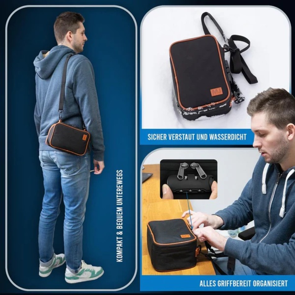 - PERFEKT FÜR REISEN: Kompaktes Design mit Schultergurt macht diese Tasche zur top Reisebegleitung. Geruchsdichte Aufbewahrungshülle mit separatem Beutel & Glas – schützt Deine Utensilien überall