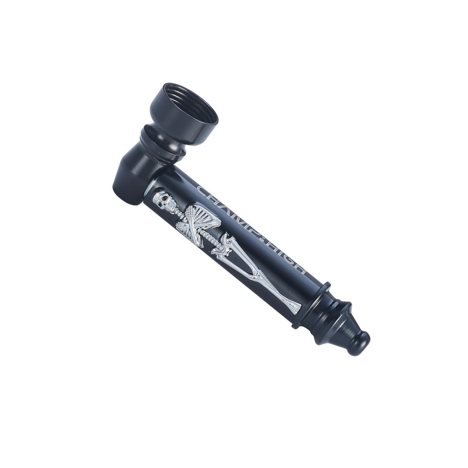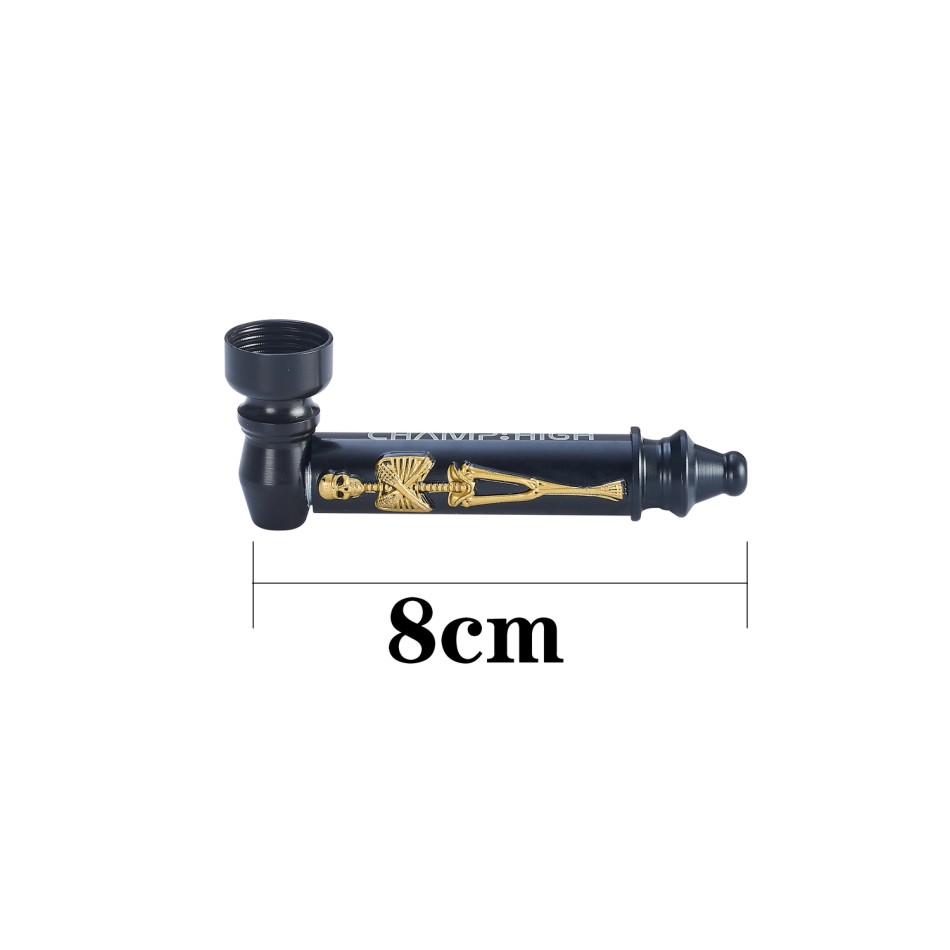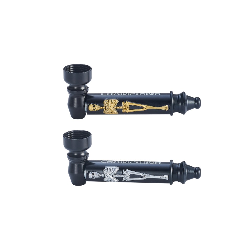 Metallpfeife ''BLACK SKELETON'' Ca. 8 cm mit Gold & Silber Skelet Motiv VE12