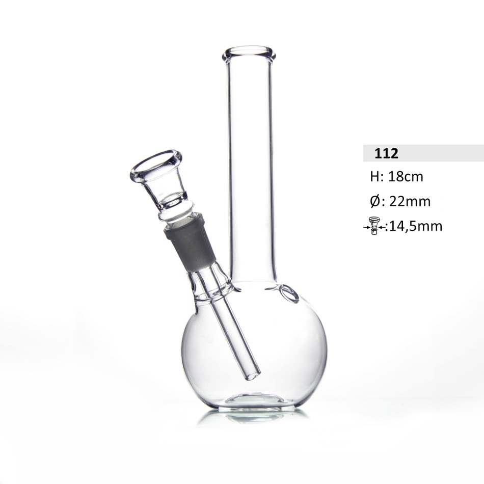 Glas Kugel Bong lässt durch das kompakte Design und einer Höhe von ca. 18cm sehr leicht transportieren. Ø=22mm, Chillum Schliff 14,5mm