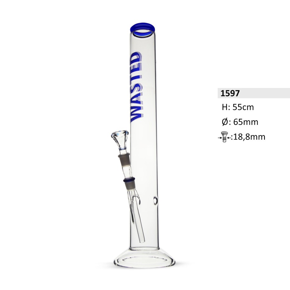 Glas Bong Wasted Zylinder Diamant formiger Kopf, H:55mm Ø=65mm, chillum 8,8mm