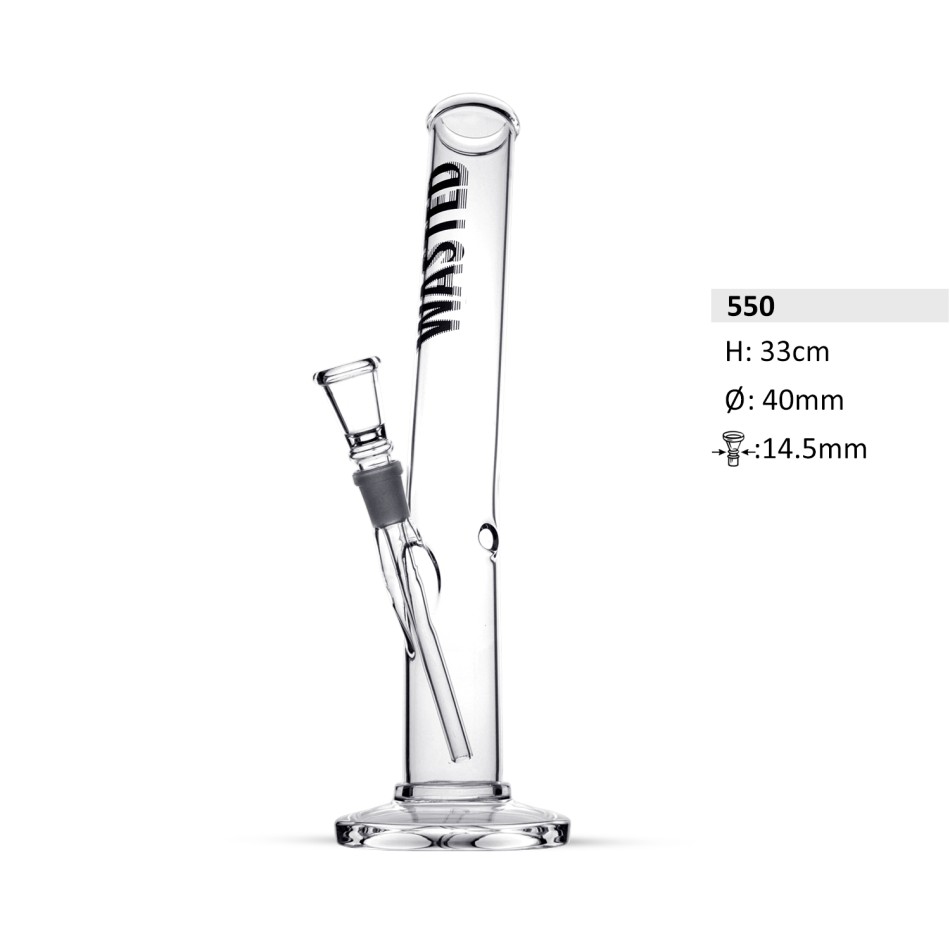 Wasted Glasbong mit Standfuß, buntem Logo und angehobenem Kickloch Ø=40mm, ca. 33cm hoch, Chillum Schliff 14,5mm