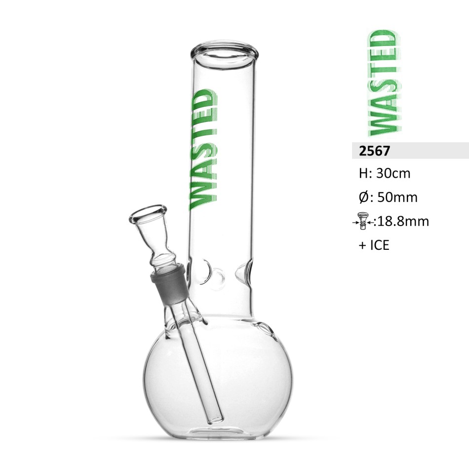 Glasbong Wasted Kugel m. Zyl. H.30cm. Schl.18,8mm 50mm +EIS