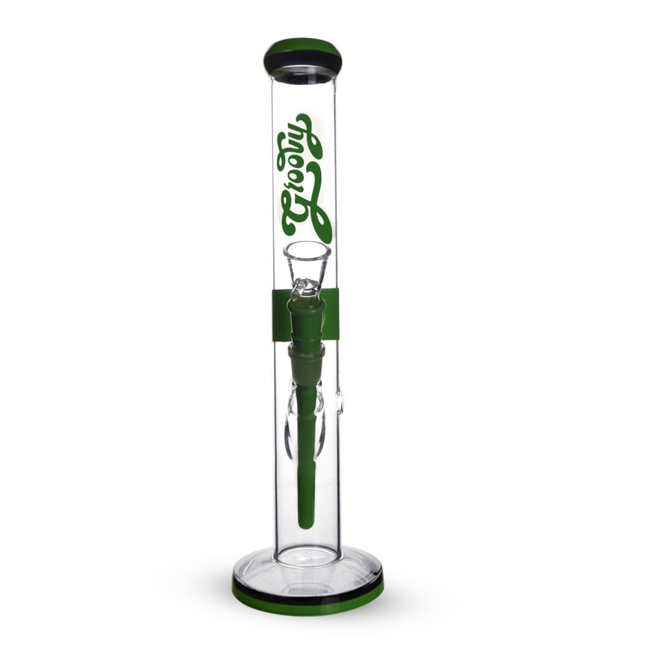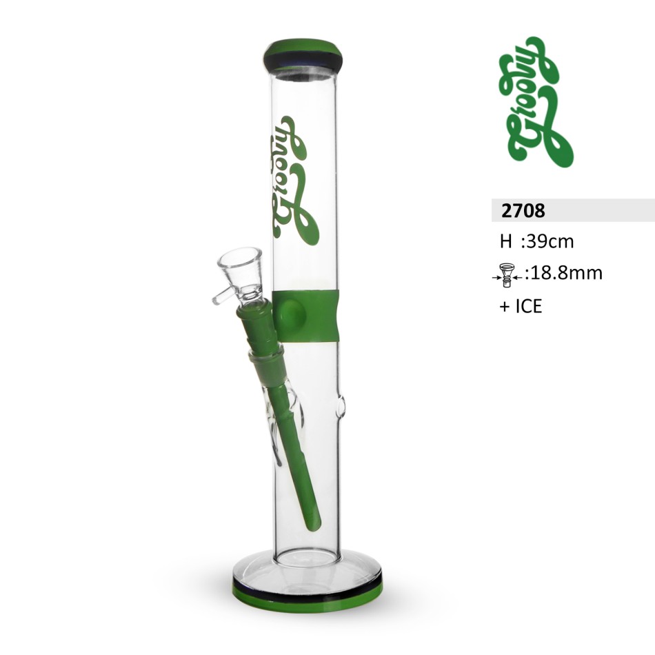 Diese schwere Glasbong ist für ein überragendes Raucherlebnis konzipiert und verfügt über eine Höhe von 39 cm, einen 18,8 mm Schliff für Kopf und Downstem sowie ein Steak-Chillum. Ihr fortschrittliches Design umfasst Eiskerben zum Kühlen des Rauchs, die für sanftere Züge sorgen. Die stilvollen grünen und schwarzen Akzente an Mundstück, Basis und Chillum machen diese Bong sowohl funktional als auch optisch ansprechend.