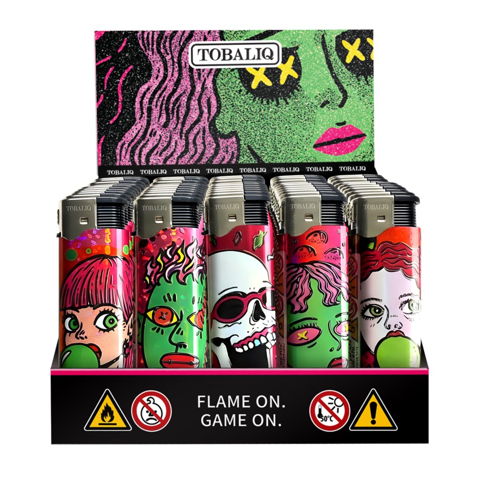 TOBALIQ Elektronische Feuerzeuge Motiv sind Feuerzeuge aus Kunststoff mit Piezozündung.