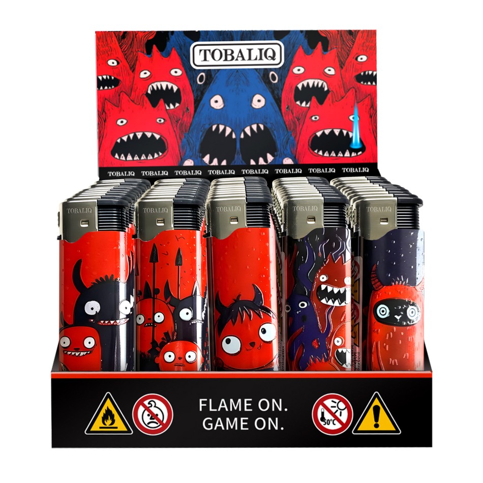 TOBALIQ Elektronische Feuerzeuge Motiv sind Feuerzeuge aus Kunststoff mit Piezozündung.