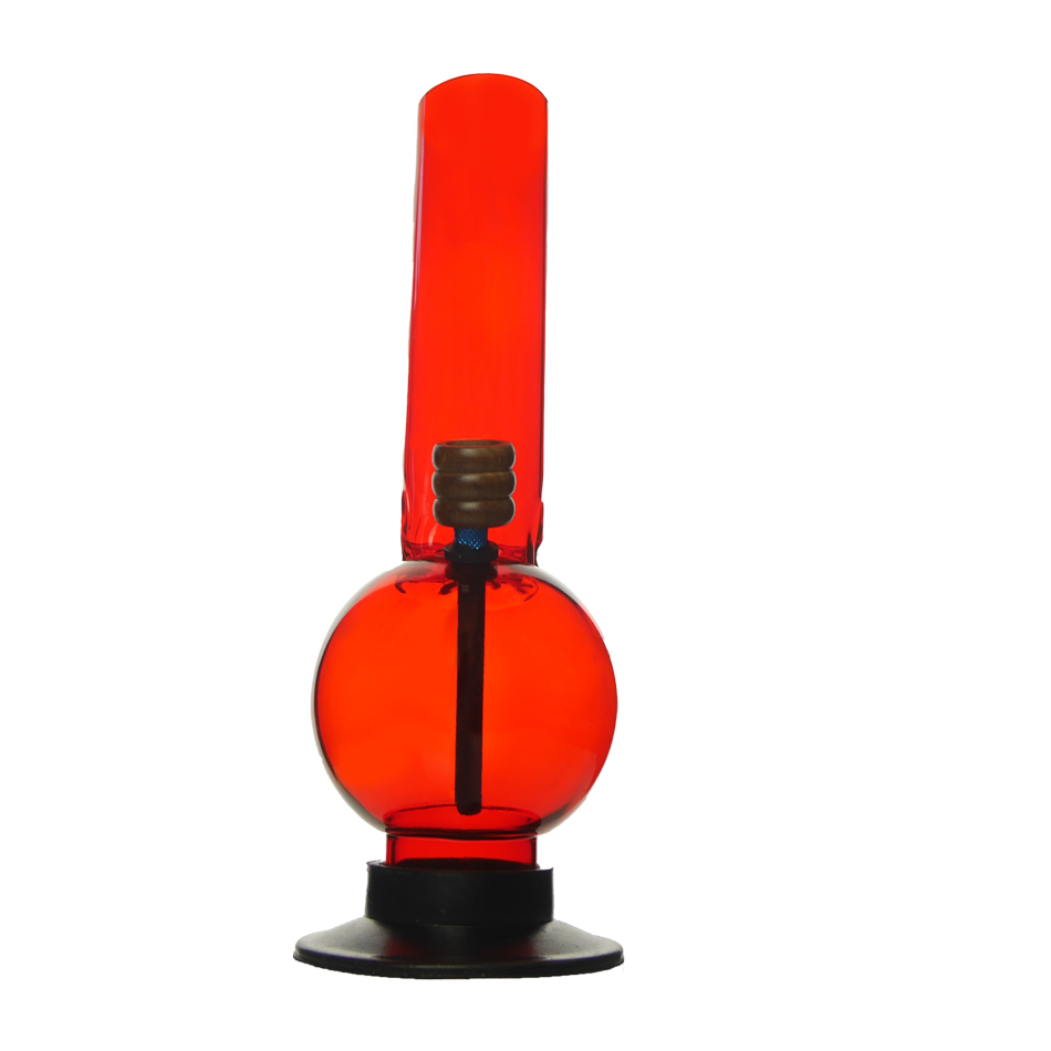 New Acryl Ice Bong Rot Gebogene mit Kugel & Holz Kopf, ca. Ø: 50 mm, H: 30 cm