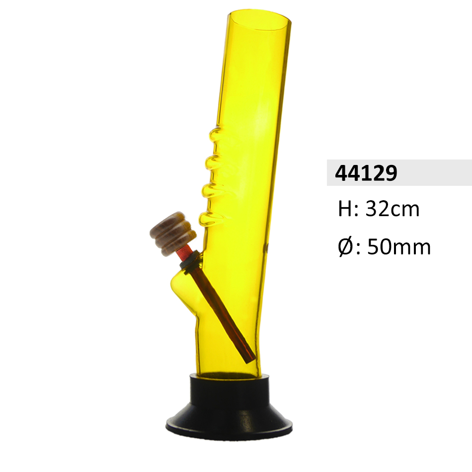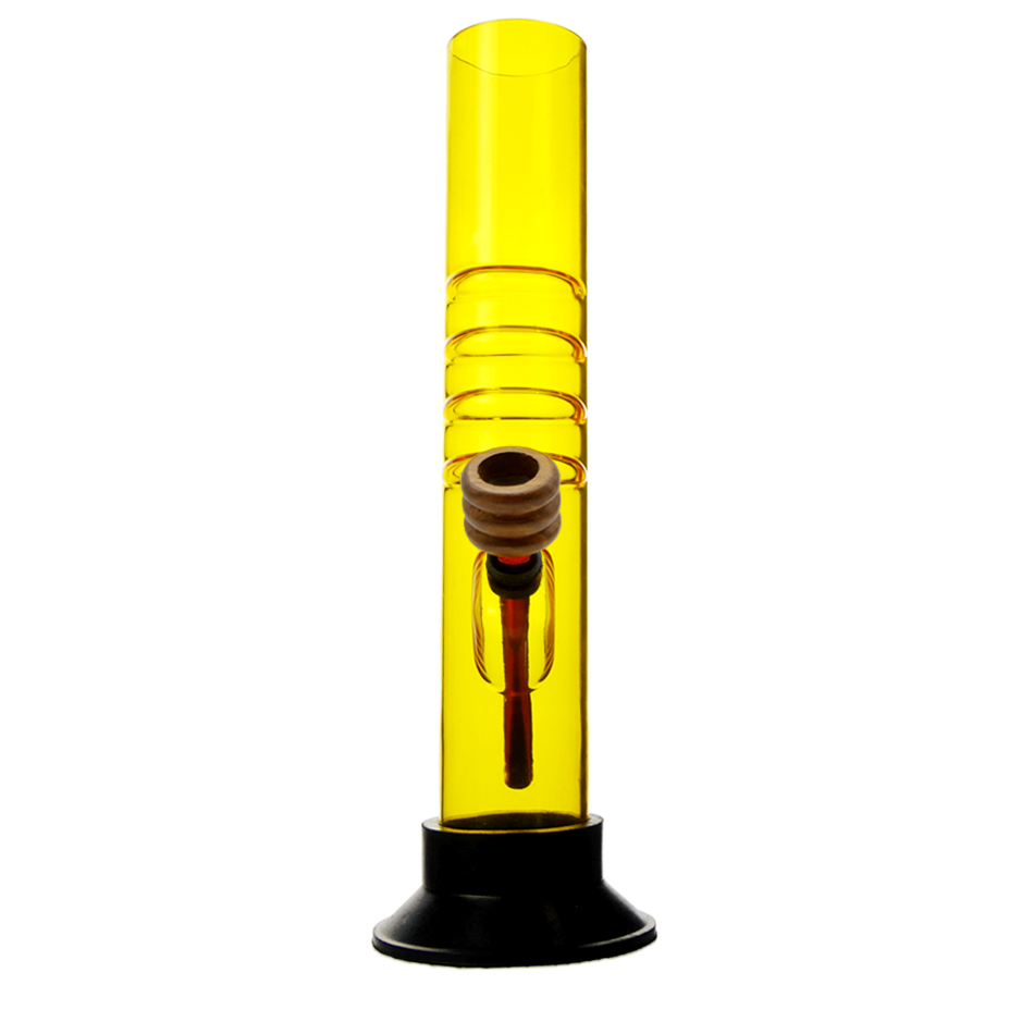 Acrylbong Gelb Gebogene mit Handgriff & Holzkopf, ca. Ø: 50 mm, H: 32 cm