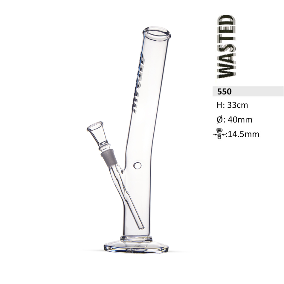 Wasted Glasbong mit Standfuß, buntem Logo und angehobenem Kickloch Ø=40mm, ca. 33cm hoch, Chillum Schliff 14,5mm