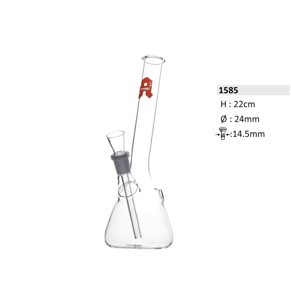 Apothek GlasBong gebogen mit konischem Kugel ca. 22cm hoch, Ø:24, Chillum, 14,5mm Schliff, Rohr 1,8mm