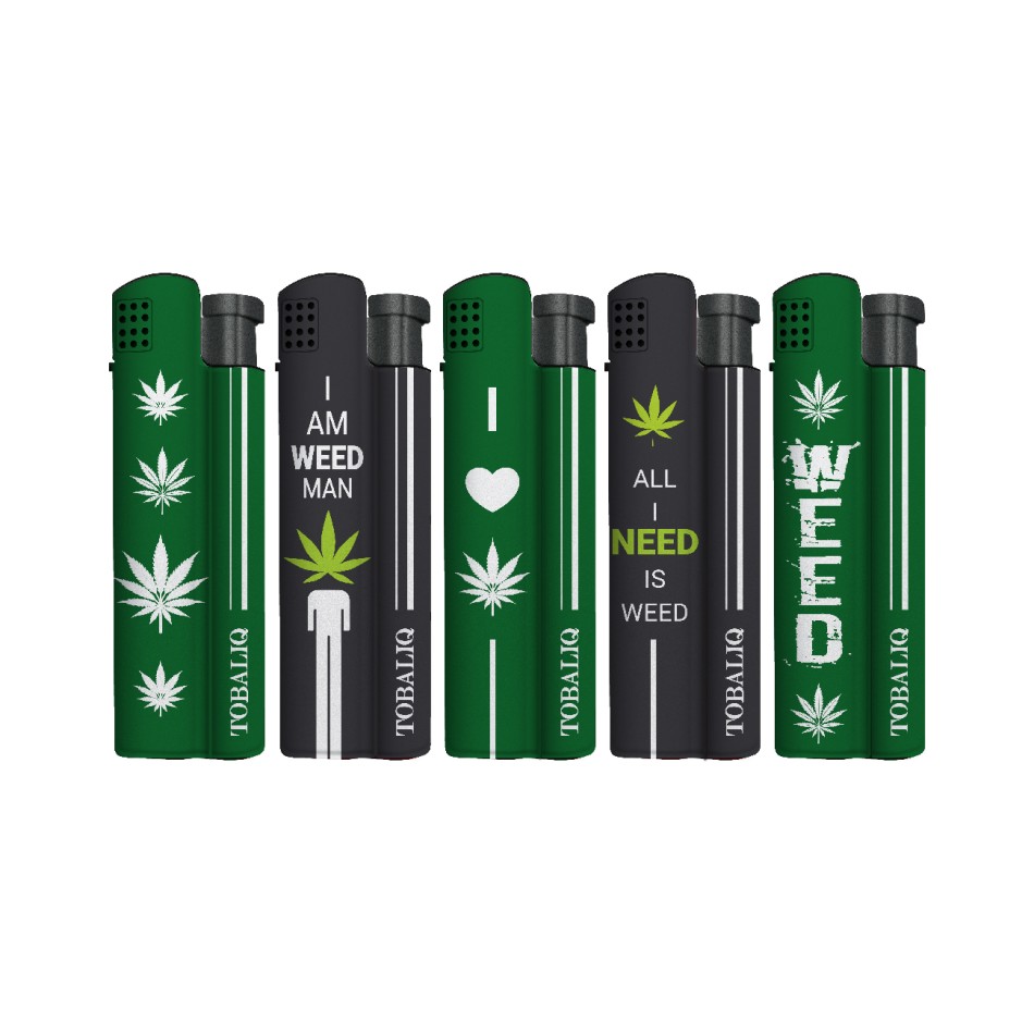 Stylisches Jet-Flame Feuerzeug im edlen Design. Das Modell  WEED NEEDED von Tobaliq überzeugt mit starker, windresistenter Flamme und robuster Verarbeitung. Geliefert im praktischen 25er Display – perfekt für Eigenbedarf, Weiterverkauf oder als edles Geschenk.