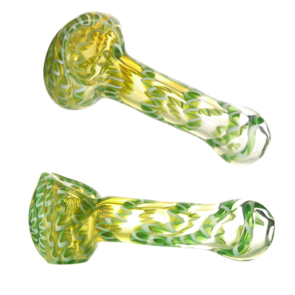 Glaspfeife mit Farbwechsel, grün/gelbe Wirbel, ca. 9 cm VE-6
