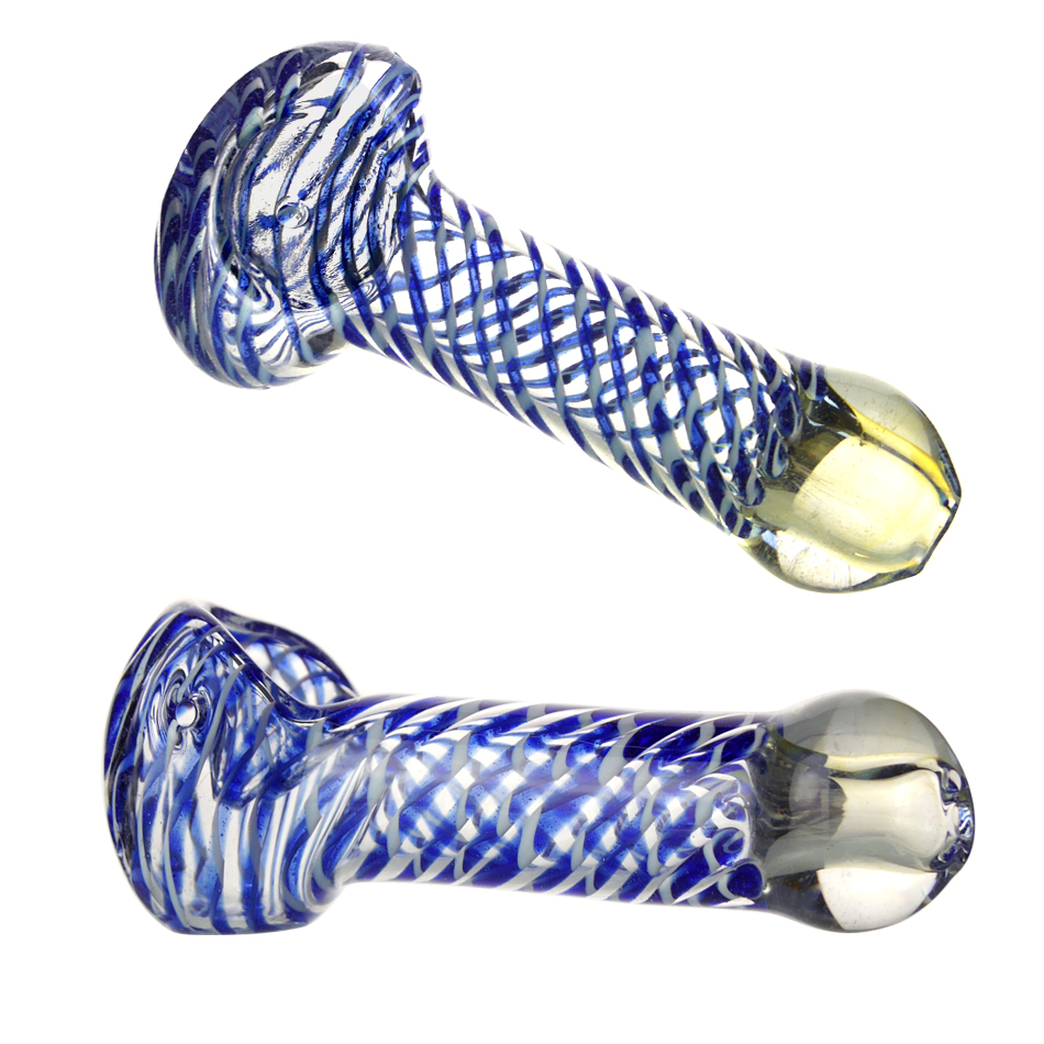 Glaspfeife mit Farbwechsel, blau/weiße Wirbel, ca. 9 cm VE-6