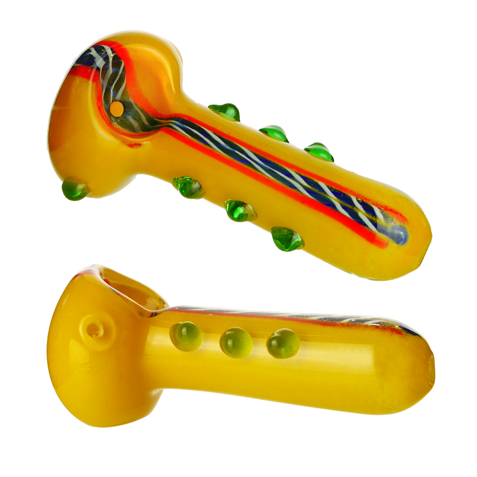 Dieses kompakte Glaspfeifen-Set mit 11 cm Länge kommt in einem auffälligen Gelb-/Grün-Farbenmix und verbindet Stil mit praktischer Nutzung. Hergestellt aus robustem Glas sind die Pfeifen leicht, handlich und ideal für den täglichen Gebrauch oder unterwegs.