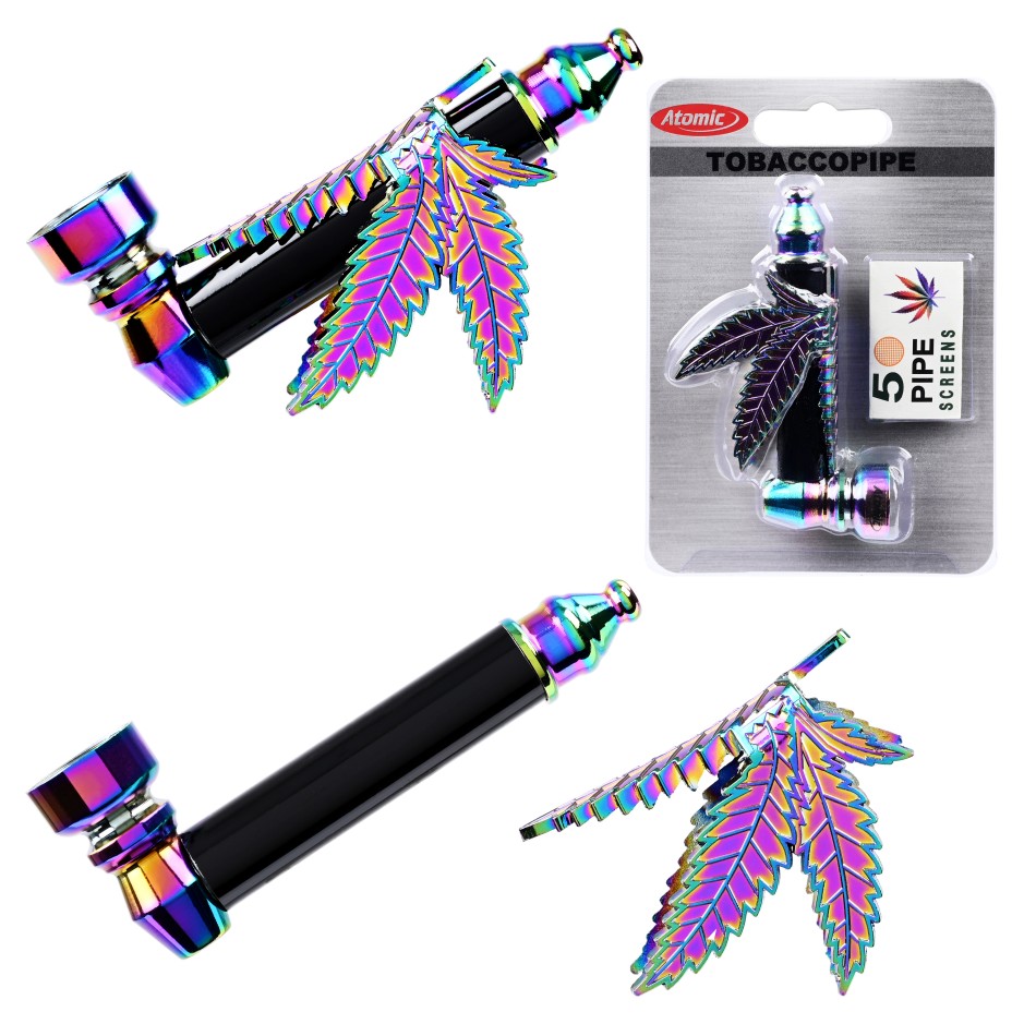 New Set – Metallpfeife im Blattdesign + Pfeifensiebe