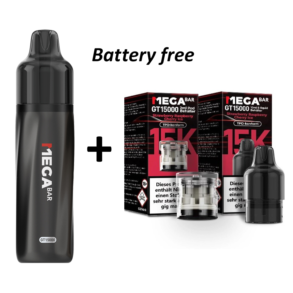 Megabar GT15000 Prefilled Pod + Batterie Frei „Strawberry Raspberry Cherry Ice“ 10ml/2ml Tank – Legal mit Steuerzeichen