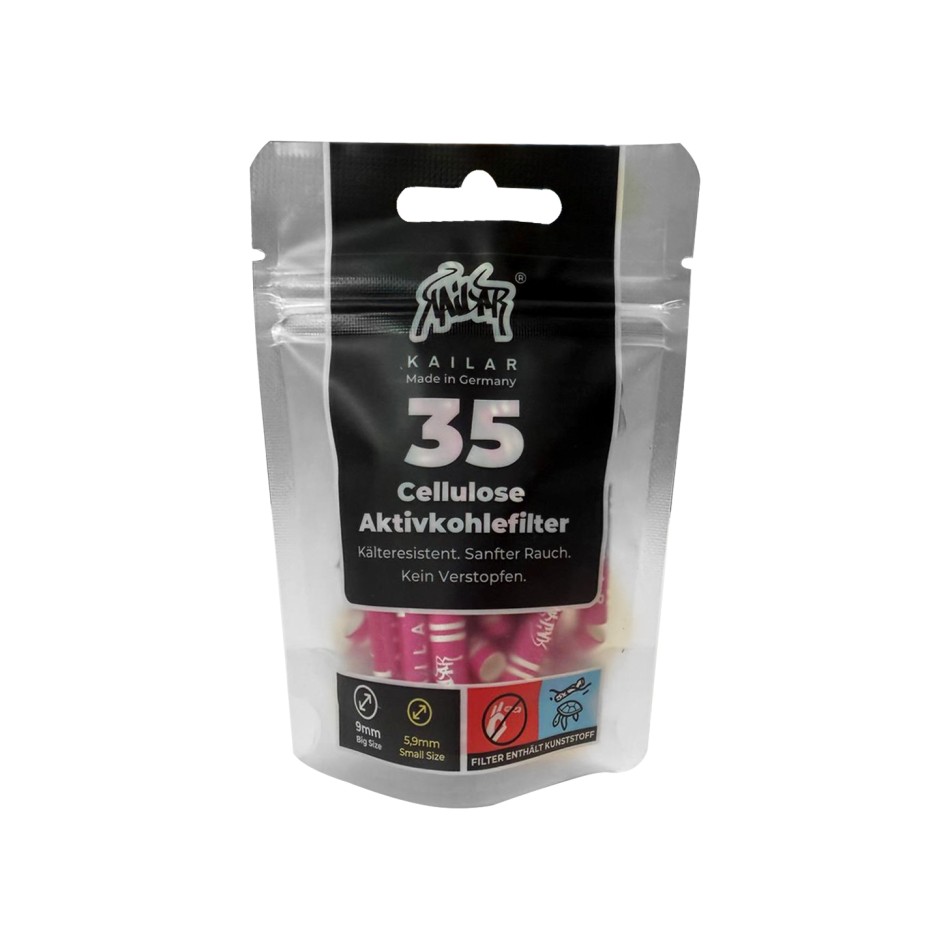 Kailar Zellulose Aktivkohle-FilterSlim ø 5,9mm /Lang 27mm. SCHWARZ. 10er Display a 35 Stück im Beutel