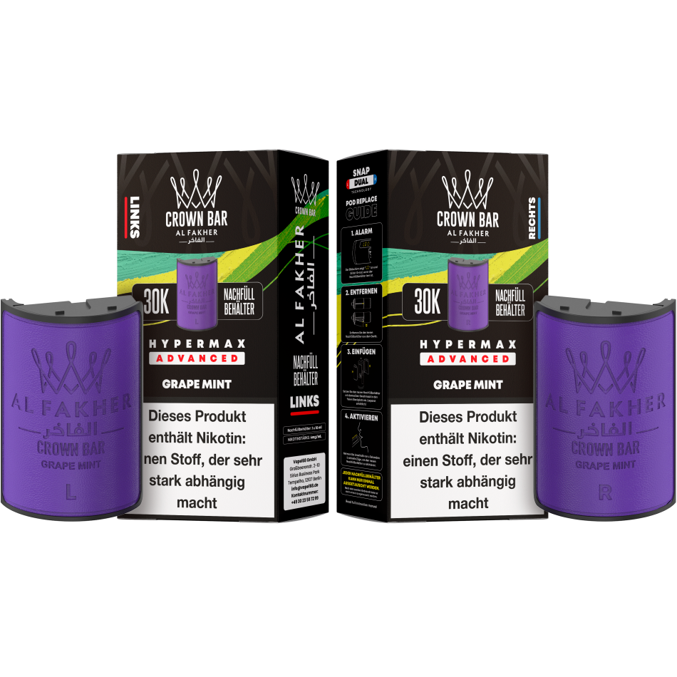Al Fakher 30K Hypermax „Grape Mint“ Vorgefüllte Pods mit Steuerbanderole